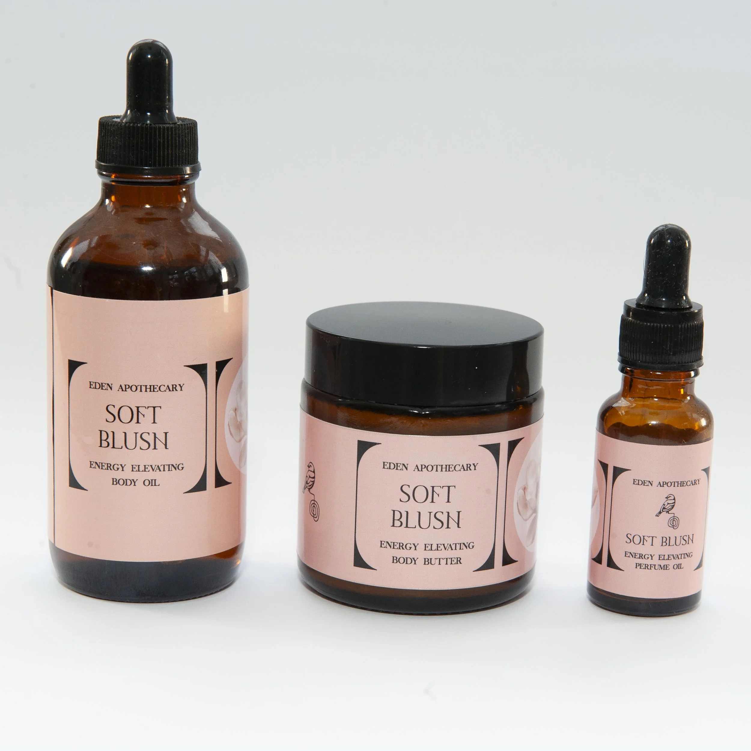 The Soft Blush Collection features a Body Butter, Body Oil and Perfume Oil. The floral mix of the blend evokes the joyful and graceful feeling of a garden in bloom. Geranium essential oil combined with Sweet Orange has a bright fragrance of summer sunshine, Rose is deeply sensual, and the Pink Pepper adds a little spice. The Patchouli and Vanilla essential oils earth and round out the blend, giving it a serene finish.